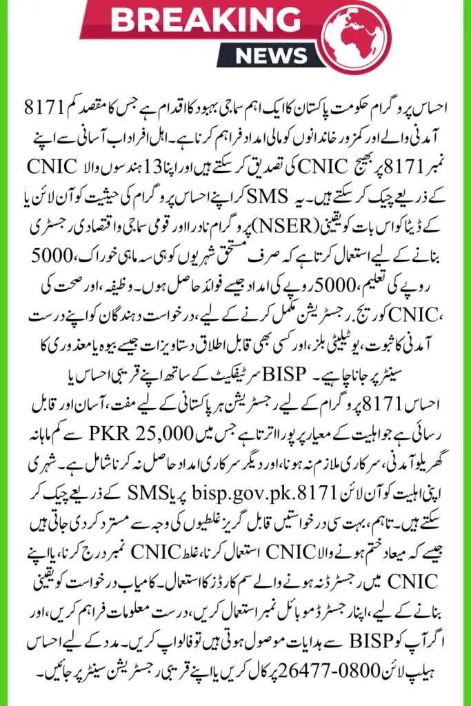 8171 Ehsaas Program CNIC verification is now available online with an updated registration guide.