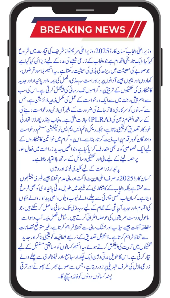 Agriculture is the foundation of Punjab’s economy, employing millions of families and shaping rural life. Yet, farmers often face challenges such as high production costs, unpredictable weather, and limited access to modern technology. To support them, the Punjab government has introduced the CM Punjab Kisan Card 2025 under the leadership of Chief Minister Maryam Nawaz Sharif.