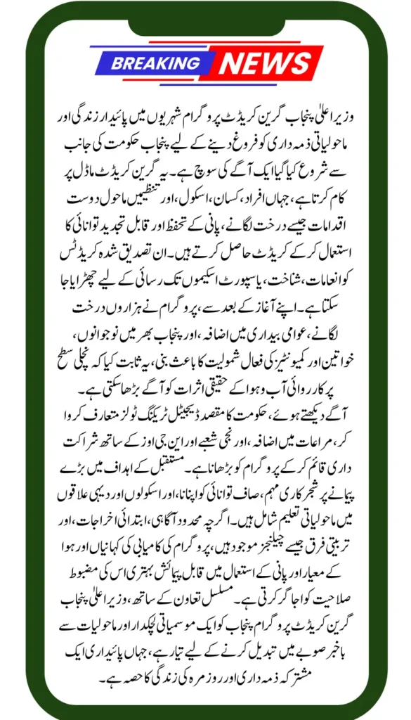 The CM Punjab Green Credit Program is not just a program—it’s a movement. It invites every citizen to engage in the climate solution and rewards participants for the courage to take action.