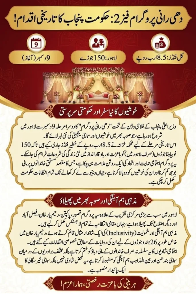 The Finance Department has released 8.5 billion PKR for this phase. These funds ensure smooth execution and full support for the couples. The program focuses on providing a dignified start for every couple.