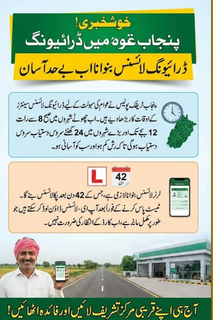 Punjab Traffic Police has extended the working hours of driving license centers across the province to improve public access. The decision focuses on reducing waiting time and making licensing services easier for citizens.